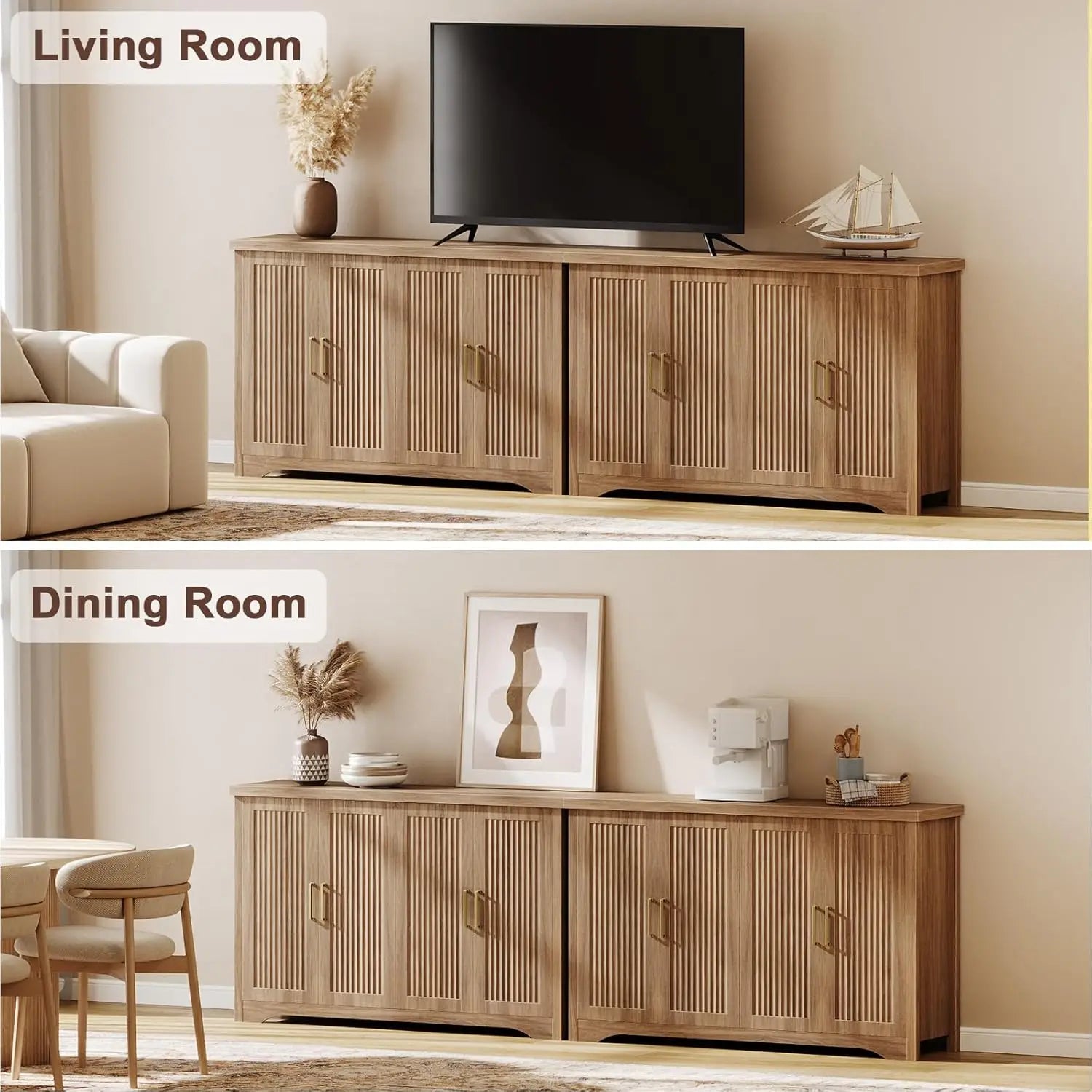Fluted Buffet Cabinet 4 Doors Coffee Bar Table